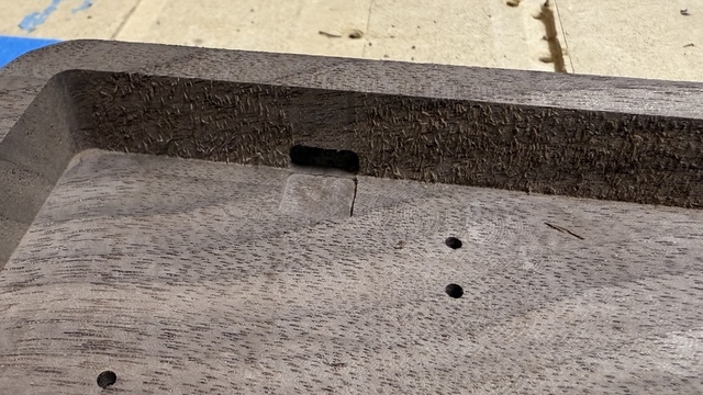 I used a 1/8” bit to hollow out the depression for the USB port. It was interesting to see the difference in the finish between what that and the 1/2” bit left.